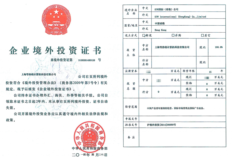 ETW臺(tái)灣-政府批準(zhǔn)證書