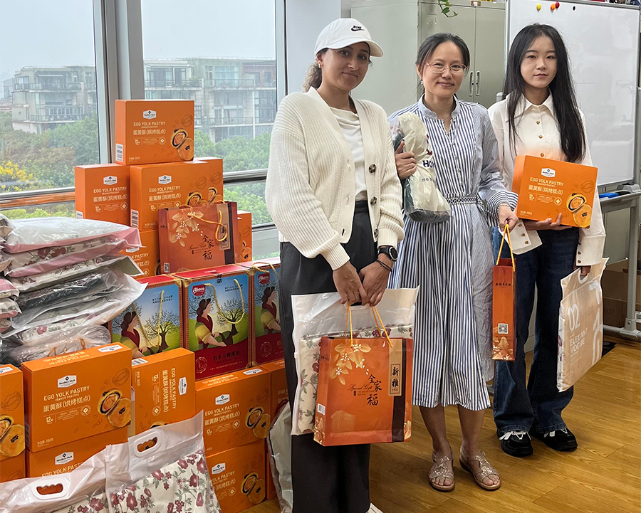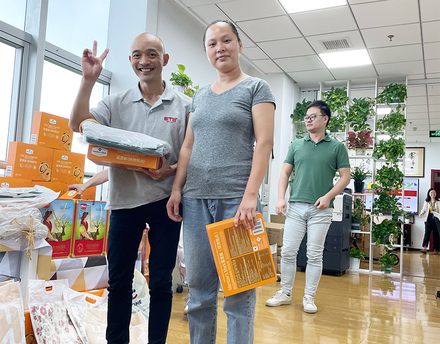 抱著禮品合個(gè)影